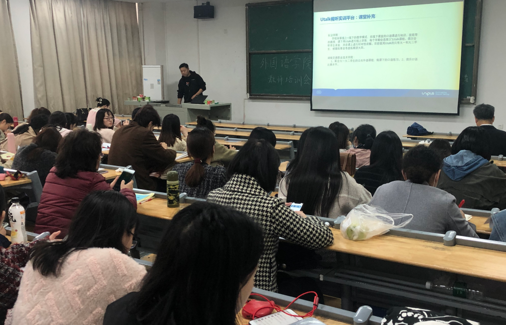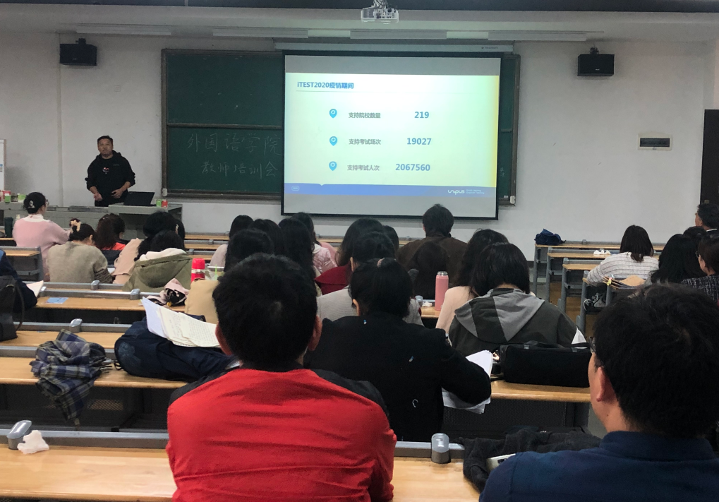 2021年3月31日周三下午两点yl6809永利集团在教一202召开全院教师培训会,由易静副教授主持,邀请外研社专业老师介绍ITEST大学外语测试与训练系统,分享外研社Unipus高校智慧教学,智慧学习,智慧测评,即就如何顺利开展混合式教学,如何迅速提升学生口语和听力能力,如何利用智能测评促进教学效果等问题进行了深入交流。