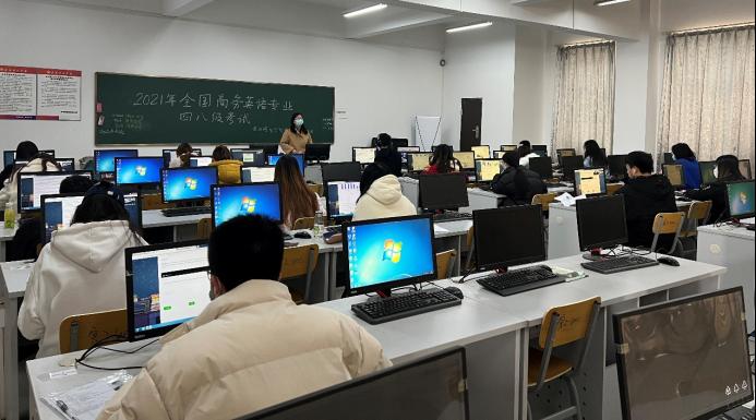 11月28日,2021年全国商务英语专业四、八级考试(机考)在我校实验楼二顺利举行。此次是我校作为考点第一次线下举行该证书考试,考试采取自愿报名的形式,有来自yl6809永利集团不同专业的共22名考生报名参加。