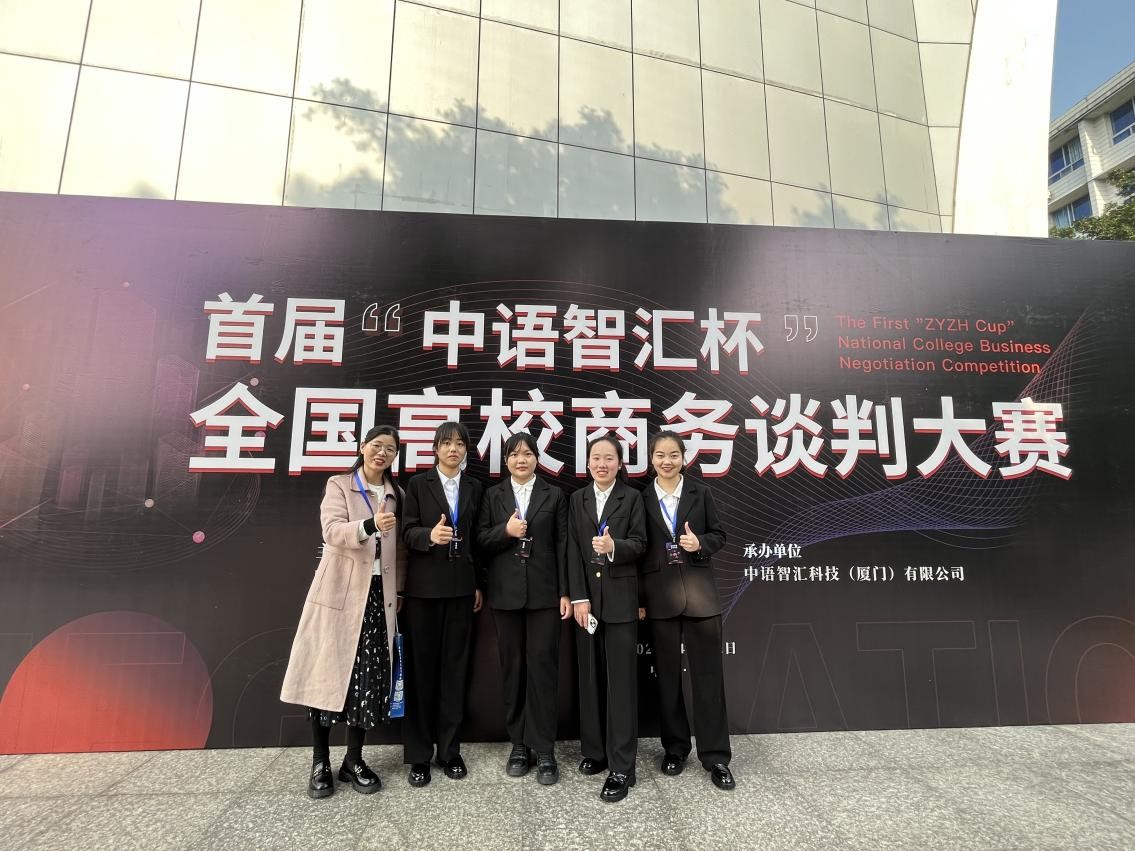 近日,由中外语言文化比较学会和四川外国语大学共同主办,中语智汇科技(厦门)有限公司承办的首届“中语智汇杯”全国高校商务谈判大赛全国总决赛在四川外国语大学隆重举行。我校yl6809永利集团商务英语系李昭薇、李钰芬、祝苏悦、王蝶四位同学在柯可老师的带领下抵达重庆,与来自上海外国语大学、四川外国语大学、中南大学等学校的高手们同台切磋竞技,一决高下,经过激烈的角逐,获得全国本科组三等奖的好成绩。