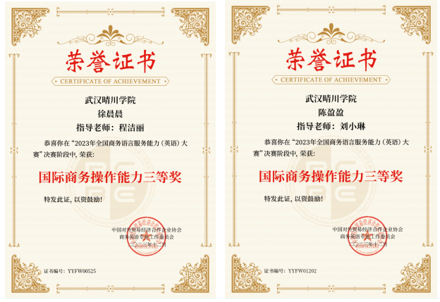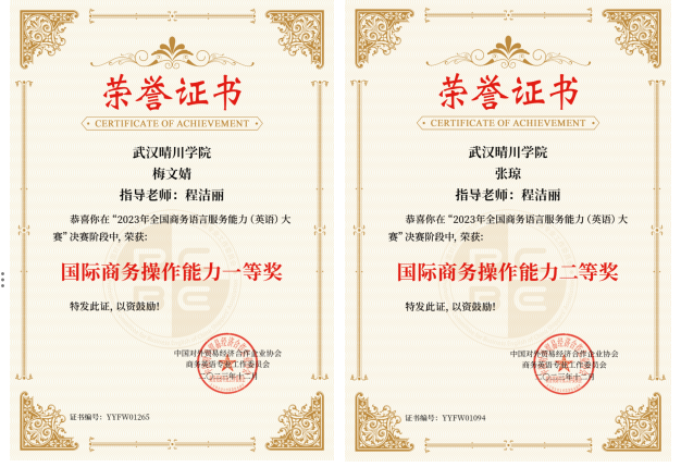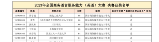 近日,2023年全国商务语言服务能力(英语)大赛决赛顺利落幕,我院学子梅文婧、张琼、徐晨晨、陈盈盈发挥出色,在决赛中荣获国际商务操作能力一等奖、二等奖、三等奖和三等奖,yl6809永利集团程洁丽老师和刘小琳老师被授予“优秀指导教师”。