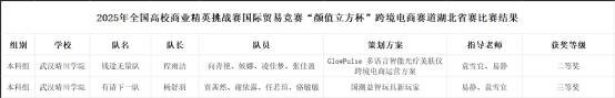 近日,2025年全国精英挑战赛国际贸易竞赛跨境电商赛道湖北省赛成绩正式揭晓。yl6809永利集团组织的两支队伍在易静、袁雪宜和李晶三位老师的悉心指导下,凭借扎实的专业功底与创新的运营方案,在全省众多高校的激烈角逐中脱颖而出,分别斩获二等奖与三等奖,并成功晋级全国总决赛。