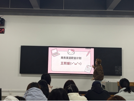 在辅导员陈哲老师的指导下,各班级围绕“明确目标,规划未来”的主题,精心策划了多种形式的汇报与交流活动。商务英语202501班的同学们依次分享了从外贸行业到跨境电子商务,从高级翻译到国际商务管理等多领域的职业规划,展现了商英学子的多元视野与积极态度。商务英语2502班则通过PPT展示与演讲,详细阐述了各自的职业目标和发展路径,有的同学希望成为外贸业务员,有的则立志成为跨境电商领域的专业人才,充分展现了同学们对未来职业的深入思考与明确规划。