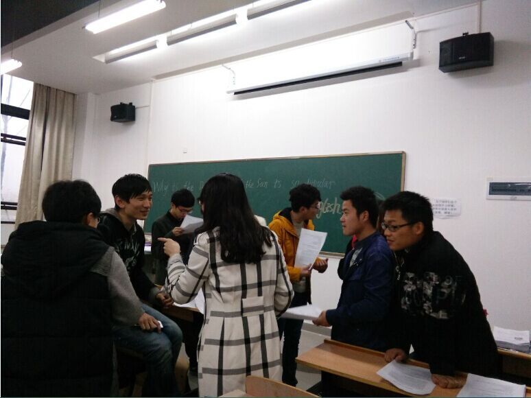 本次活动于下午5点开始,我院英专教师肖婧老师准备了学生们喜闻乐见的诸多话题,同时挑选了三名口语优秀的学生助教协助每个小组展开讨论。网络热词的英文表达,如高颜值、收视率、高人气、剧透等,让学生们从英语上紧跟潮流;另外,肖老师引导学生们将国产剧和韩剧从剧情、制作、宣传、演员、配乐等多方面进行对比,极大地激起同学们的兴趣,同时深入思考电视剧所带来的影响力。在肖老师和三位助教的带动下,同学们畅所欲言,热烈兴奋地讨论自己的偶像;部分同学敞开心扉,分享了自己的情感经历和憧憬;肖老师还和同学们一起讨论情感观念,以期学生们能拥有健康、积极的爱情观和价值观。开放、自由的气氛感染了每一位参与的学生。