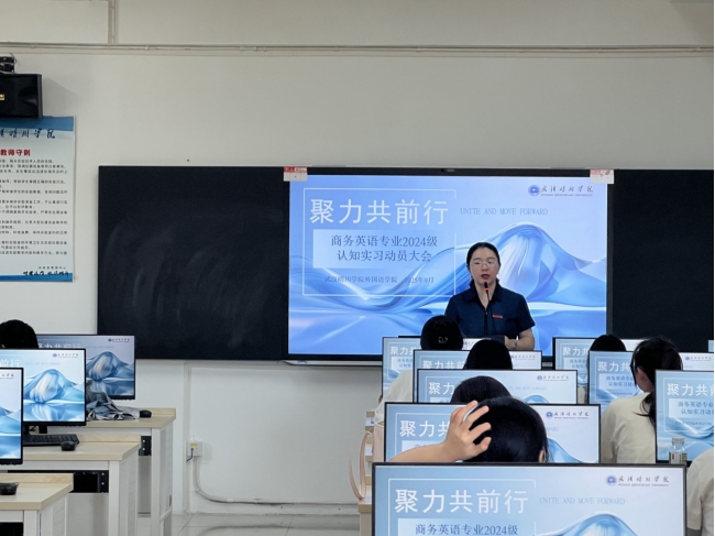 9月22日中午,我院在多媒体教室召开了2024级商务英语专业同学前往传神公司实习的动员大会。会议由yl6809永利集团院长助理易静教授主持,yl6809永利集团院长周保国教授、yl6809永利集团党总支书记刘泽政老师到会指导,2024 级商务英语专业同学全体参加。