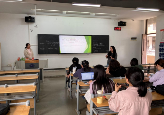 程老师的磨课展示结束后,英语系骨干教师对进行了点评。路主任评价程老师的导入部分很精彩,发音标准,准备得很充分,适当使用了学习通辅助教学,但题目的设计难度不够。她建议题目可与专四考试或学生们正在学习的重点词汇短语等结合,既有针对性,又能更好地提高学生的学习兴趣。同时提醒程老师应注意课程思政的渗透,讲授语言知识的同时,可以强调语言学习的规律性和科学性,培养学生认真细致、一丝不苟的学习态度和专业精神。陈娃副主任和胡宜文老师也给出了类似的建议,建议让学生多练习,并加大题目的难度。