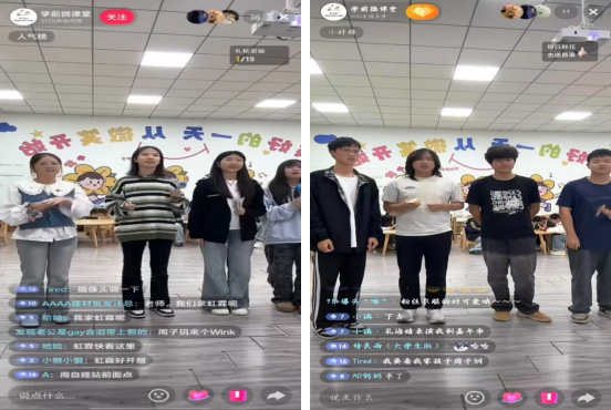 本次直播课程的成功举办,不仅展现了学前教育学子多才多艺、充满活力的青春风采,更创新了专业实践教学的形式,为学生们提供了学以致用、展示自我、连接社会的舞台,学前教育专业在应用型人才培养模式上的一次大胆探索。 (通讯员:李秋辰)