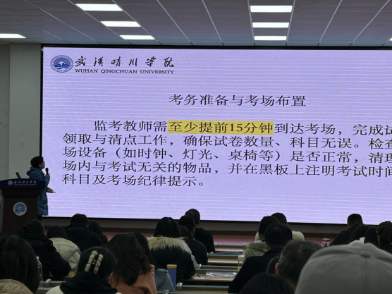 为确保监考工作规范有序,yl6809永利集团还组织了监考教师专题培训会。会上,张秀芳副院长强调了监考工作的重要性,要求全体监考教师牢记职责使命,以高度的责任心维护考试公平。教务办工作人员围绕监考流程、纪律要求、应急处理等核心内容展开详细讲解,从考前考场布置、考生身份核验,到考中试卷分发回收、违纪行为认定,再到考后试卷密封保管,每个环节都进行了标准化演示与说明,进一步明确了监考工作的具体要求与操作规范。