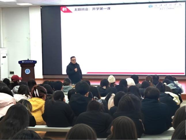 刘书记开篇结合春晚热点、美伊战争等话题,引导同学们深刻认识当前形势,从而引出本次授课主题。他紧紧围绕学校人才培养目标、人才培养模式、学生管理强化措施、教育服务保障等内容展开讲解。
