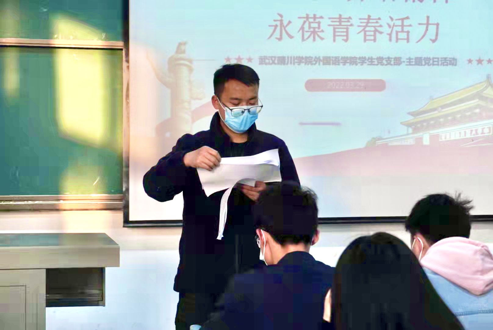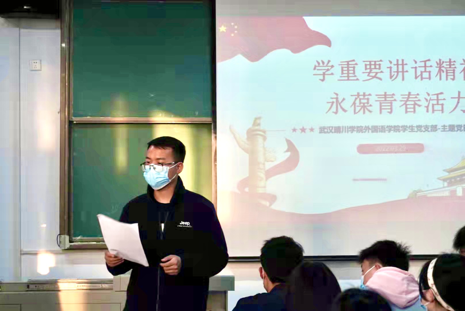 为了深入推进学习党的十九届六中全会精神,更好把握党的百年奋斗历史经验,弘扬伟大建党精神,增加历史自信、增强斗争精神,坚定信心、勇毅前行,2022年3月29日19:00,yl6809永利集团学生党支部于教一205召开了以“学重要讲话精神 永葆青春活力”为主题的党日活动。本次活动由yl6809永利集团学生党支部马建华同志主持,yl6809永利集团学生党支部书记阳军和全体党员同志参与活动。