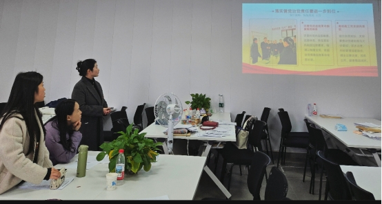 为精准把握文章核心要义,支部采用“委员分工领学+集中研讨”的模式推进学习:青年委员黄欣聚焦“对党的自我革命认识要进一步到位”,强调强化“政治三力”与忠诚担当;组织委员袁婷围绕“党员干部增强党性要进一步到位”,提出将理论学习融入教学科研与师德师风建设;宣传委员殷彩桥、纪检委员何聪、统战委员王芳则分别针对权力规范运行、从严监督执纪、落实管党治党责任等要点,结合高校工作实际明确了学习方向与实践要求。