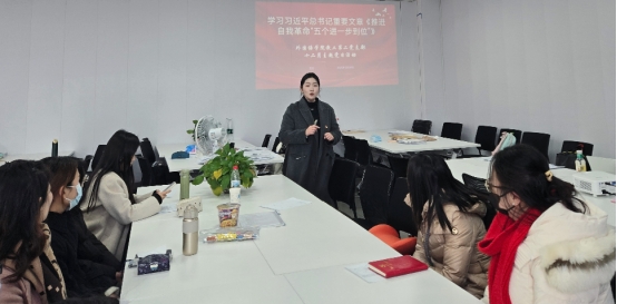 活动伊始,支部书记范云结合党的二十大后深化全面从严治党的关键节点,系统解读了文章发表的时代背景与核心价值。她从理论创新与实践指引双重维度,阐明了该文章对丰富马克思主义建党学说、指导高校基层党建工作的重要意义,同时梳理了自我革命命题的提出与深化脉络,引导党员教师深刻认识到自我革命的重要性,切实增强以自我革命精神推进支部工作的政治自觉与思想自觉。