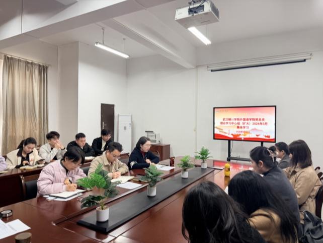 在学习会上,教工第二党支部书记范云同志领学了《2026年政府工作报告》《十四届全国人大四次会议关于政府工作报告的决议》《十四届全国人大四次会议关于“十五五”规划纲要的决议》。范云同志在领学时谈到,外语教育要主动融入国家战略传播能力建设,数字化转型是提升教学质量的关键抓手,人才培养要精准对接社会需求。党建引领要推动党建与业务深度融合。