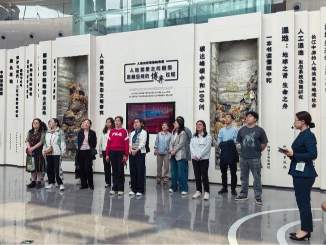 参观过程中,党员教师们对展馆内展示的生态修复技术与绿色发展成果感触颇深。大家一致认为,梁子湖的蝶变是树立和践行正确政绩观在基层的生动实践——不以牺牲环境为代价换取一时的经济增长,而是坚持长远眼光,走可持续发展之路。这种理念对于高等教育工作具有深刻的借鉴意义,教育工作者要像保护生态一样,呵护学生的成长环境,注重内涵式发展,摒弃短视行为,致力于培养具有家国情怀和全球视野的高素质外语人才。