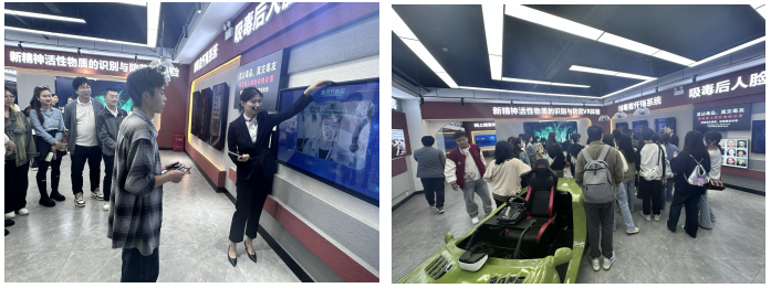 毒品的种类介绍完后,工作人员向大家主要讲解了毒品的危害。同学们通过观看和体验有关吸毒后人脸变化系统、制毒者忏悔系统、新精神活性物质的识别与防范VR体验、毒驾模拟体验系统,让同学们更直观的感受到了毒品的危害。