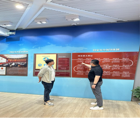 进入中共五大会址,首先参观学习的是“安邦基石”武汉国家安全教育展。这片主题展区共分为五个部分。一进入序厅,映入眼帘的就是主题浮雕墙,这是由多个国家安全重点领域元素组合而成,表明当前我国国家安全内涵和外延比历史上任何时候都要丰富,时空领域比历史上任何时候都要宽广,内外因素比历史上任何时候都要复杂。随后进入第一展区,此展区的主题是“安国重典”,在这个展区呈现了国家安全法以法律形式确立了总体国家安全观的指导地位和国家安全领导体制,规定了维护国家安全的各项任务,建立了维护国家安全的各项制度。进入第二展区,此展区的主题是“较量无声”,在这一展区主要呈现了反分裂、反间谍、反恐怖是维护国家安全重点领域的重要战场。国家安全关乎国家核心利益,维护国家重点领域安全,坚持专门工作与群众路线相结合是有效开展国家安全工作的重要法宝。进入第三展区,此展区的主题是“无名丰碑”,这一展区为我们解密了我党隐蔽战线上的无名英雄为取得中国革命、建设和改革的伟大胜利建立了不朽的功勋,而武汉作为我党专业情报保卫机构的发源地,在隐蔽战线历史上留下了光辉一页。进入尾厅,参观的学员们纷纷在电子留言簿上签名和留言,表达了学员们牢固树立国家安全观,忠诚维护国家安全的责任与担当。